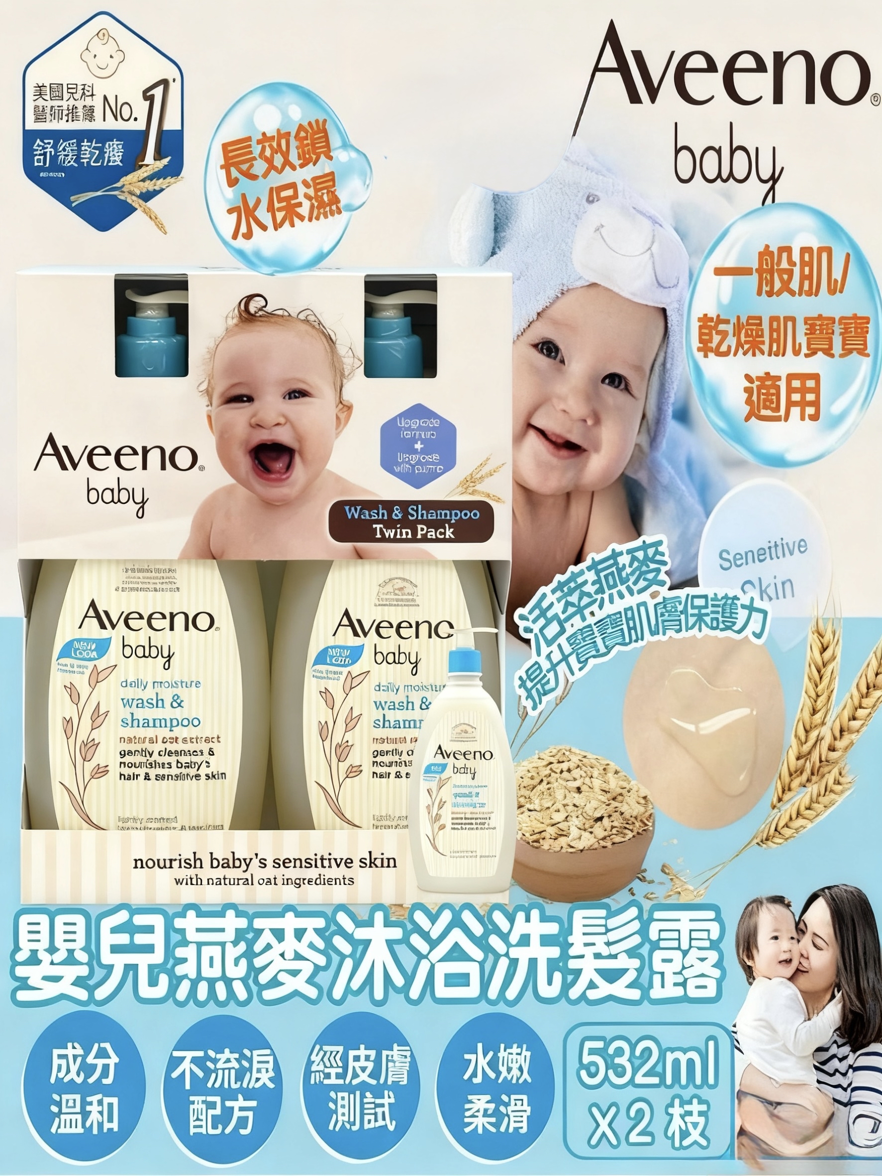 2-3星期到貨❤️Aveeno Baby嬰兒天然燕麥沐浴洗髮露(1套2枝)台版