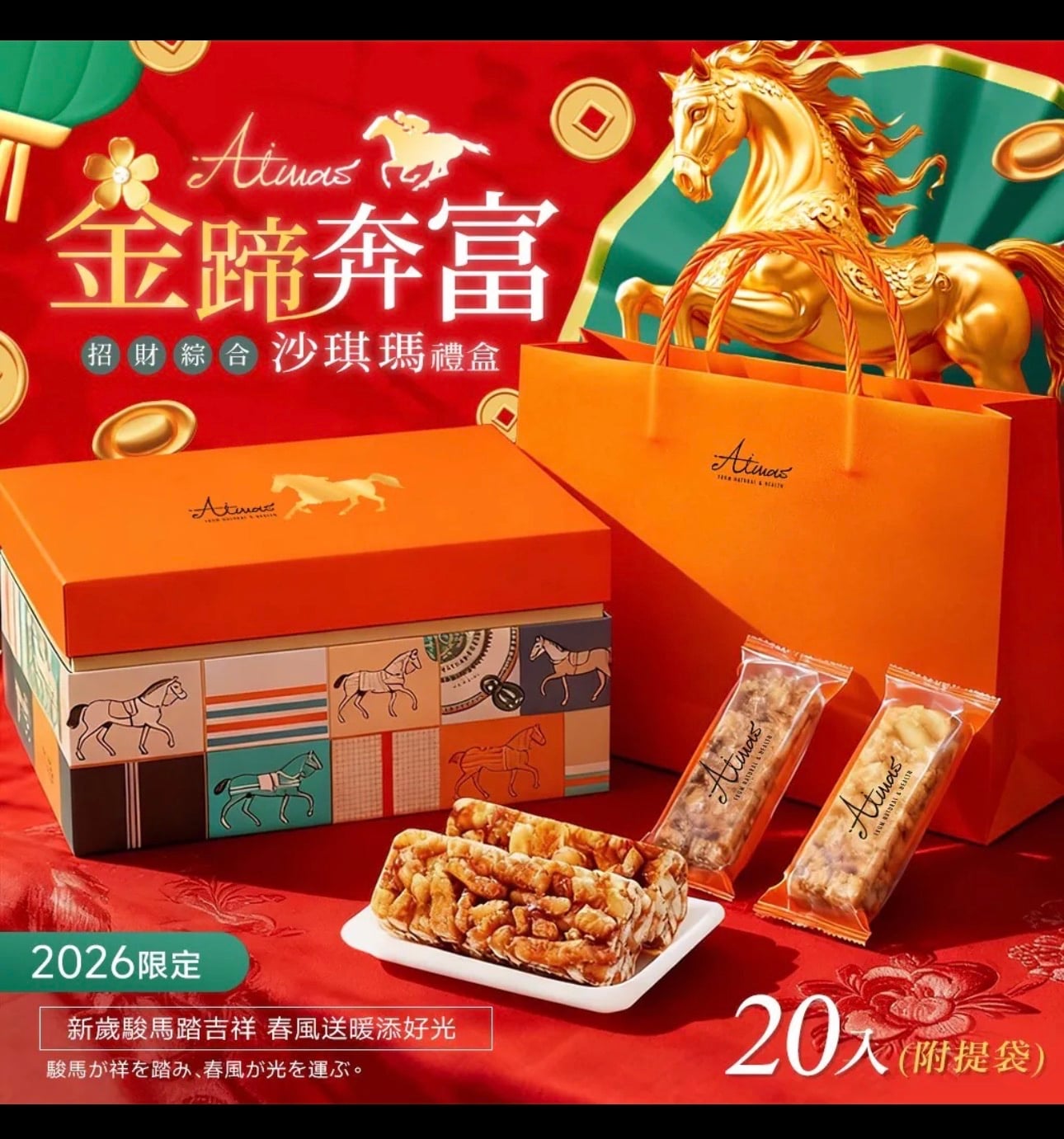 截單:20/12‼️貨期:2月初‼️嬡瑪絲Aimas® 馬年新春限定 金蹄奔富|招財綜合黃金沙琪瑪禮盒組 20入(附提袋)