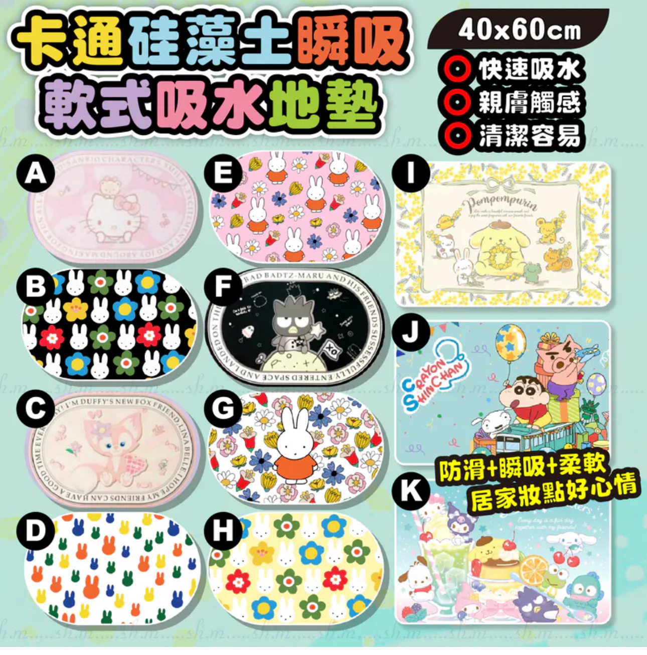 現貨‼️ 卡通軟式珪藻土吸水地墊